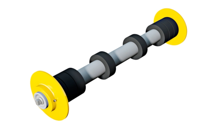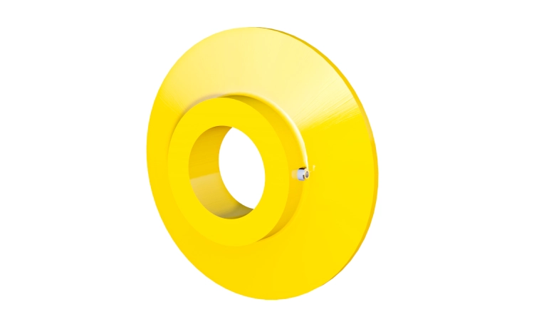 De discus sluit de transportband op op de retourrol en bevordert de rechte loop van de band.